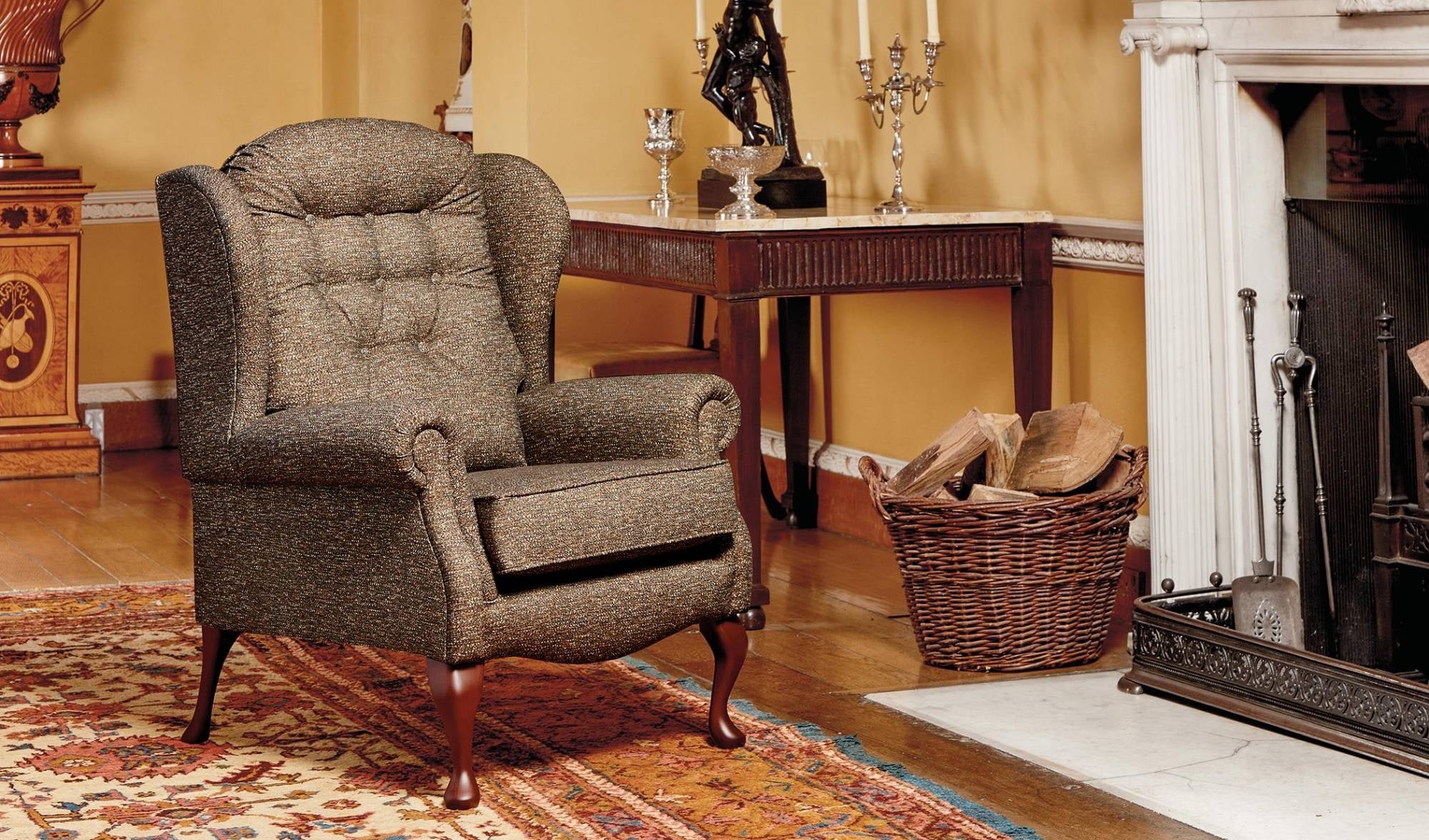 Exceptionally-popular Fireside range offered in both standard and high seat versions in all Fabrics and Leathers. Features classic scroll arms and a choice of Queen Anne or Classic legs in a Dark or a Light finish.